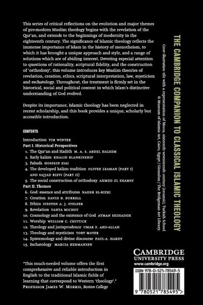Introduction Tim Winter; Part I. Historical Perspectives: 1. The Koran and Hadith M. Abdel Haleem; 2. Early kalÄm Khalid Blankinship; 3. Falsafa Hossein Ziai; 4. The developed kalÄm tradition Oliver Leaman and Sajjad Rizvi; 5. The social construction of orthodoxy Ahmed El Shamsy; Part II. Themes: 6. God: essence and attributes Nader El-Bizri; 7. Creation David Burrell; 8. Ethics Stefan Stelzer; 9. Revelation Yahya Michot; 10. Cosmology and the existence of God Ayman Shihadeh; 11. Worship William C. Chittick; 12. Theology and jurisprudence Umar F. Abd Allah; 13. Theology and mysticism Toby Mayer; 14. epistemology and divine discourse Paul Hardy; 15 Eschatology Marcia Hermansen.