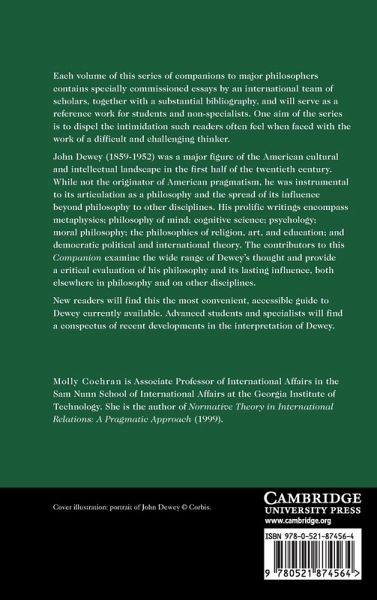 List of contributors; Method of citation; Introduction Molly Cochran; 1. The making of a democratic philosopher: the intellectual development of John Dewey Robert Westbrook; 2. Dewey's epistemology Ruth Anna Putnam; 3. The naturalism of John Dewey Richard Gale; 4. Dewey's logic of inquiry Isaac Levi; 5. The primacy of practice in Dewey's experimental empiricism J. E. Tiles; 6. Cognitive science and Dewey's theory of mind, thought, and language Mark Johnson; 7. John Dewey on action Matthias Jung; 8. Dewey's moral philosophy Jennifer Welchman; 9. Ethics as moral inquiry: Dewey and the moral psychology of social reform James Bohman; 10. Dewey and pragmatic religious naturalism Sami Pihlström; 11. Dewey's aesthetics Richard Eldridge; 12. Dewey's philosophy of education: a critique from the perspective of care theory Nel Noddings; 13. Dewey's vision of radical democracy Richard J. Bernstein; 14. Dewey as an international thinker Molly Cochran.