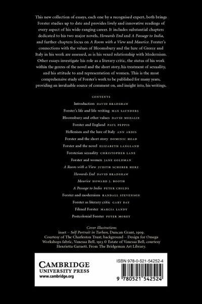 Chronology Introduction David Bradshaw 1. Forster's life and life-writing Max Saunders 2. Bloomsbury and other values David Medalie 3. Forster and England Paul Peppis 4. Hellenism and the lure of Italy Ann Ardis 5. Forster and the short story Dominic Head 6. Forster and the novel Elizabeth Langland 7. Forsterian sexuality Christopher Lane 8. Forster and women Jane Goldman 9. A Room with a View Judith Herz 10. Howards End David Bradshaw 11. Maurice Howard Booth 12. A Passage to India Peter Childs 13. Forster and modernism Randall Stevenson 14. Forster as literary critic Gary Day 15. Filmed Forster Marcia Landy 16. Postcolonial Forster Peter Morey.