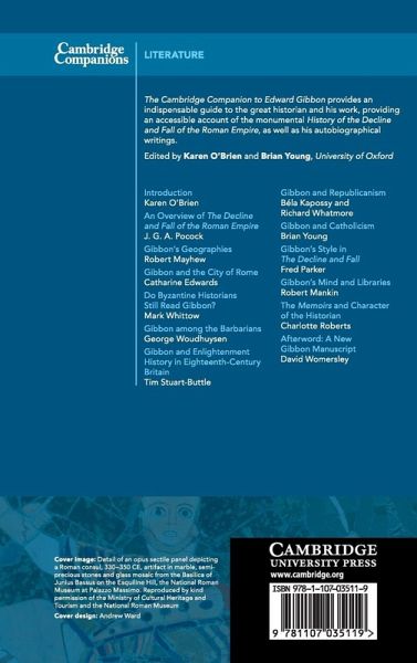 Edward Gibbon's History of the Decline and Fall of the Roman Empire, published in three instalments from 1776 to 1788, is widely regarded as the greatest work of history in the English language. Starting with the accession of the Roman Emperor Commodus in the late second century CE, Gibbon's work traverses thirteen centuries, encompassing the rise of Christianity and of Islam, the collapse of the Roman Empire in the West, and the fall of the Byzantine Empire in 1453. This Companion provides a comprehensive overview of the intellectual roots, contemporary European contexts, literary style and thematic scale of Gibbon's achievement. Alongside the History, it gives an introduction to Gibbon's other works, including the Memoirs he left unfinished at his death and previously unpublished material. Leading international scholars in the fields of classics, geography, history and literature provide a comprehensive account of Gibbon's monumental account of decline, fall and global historical transformation.
