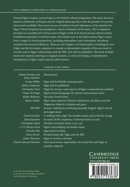 Edward Elgar occupies a pivotal place in the British cultural imagination. His music has been heard as emblematic of Empire and the English landscape. The recent success of Anthony Payne's elaboration of the sketches for Elgar's Third Symphony has prompted a critical revaluation of his music. This Companion provides an accessible and vivid account of Elgar's work in its historical and cultural context. Established authorities on British music and scholars new in the field examine Elgar's music from a range of critical perspectives, including nationalism, post-colonialism, decadence, reception and musical influences. There are also chapters on interpretation, including his own (Elgar was the first major composer to commit a representative quantity of his own work to record), and on Elgar's relationships with the BBC and with his publishers. The book includes much new material, drawing on original research, as well as providing a comprehensive introduction to Elgar's major musical achievements.