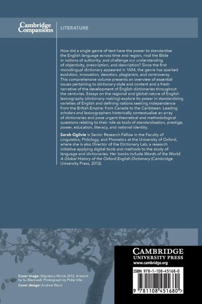 ; 4. Diachronic and synchronic English dictionaries Judy Pearsall; 5. Description and prescription: the roles of English dictionaries Edward Finegan; 6. European cross-currents in English lexicography Giovanni Iamartino; 7. English slang dictionaries Michael Adams; Part II. English Dictionaries throughout the Centuries: 8. A dictionary ecosystem: four centuries of English lexicography John Considine; Seventeenth-Century English Dictionaries: Hard Words: 9. Cawdrey, Coote, and 'Hard Vsual English Wordes' Roderick W. McConchie; 10. Seventeenth- and eighteenth-century English lexicography Rebecca Shapiro; Eighteenth-Century English Dictionaries: Prescriptivism and Completeness: 11. Recording the most proper and significant words Allen Reddick; 12. Samuel Johnson and the 'first English dictionary' Jack Lynch; Nineteenth-Century English Dictionaries: Descriptivism: 13. The making of American English dictionaries Michael Adams; 14. The Oxford English Dictionary Sarah Ogilvie; Twentieth and Twenty-First Century Dictionaries: 15. The English period dictionaries Robert E. Lewis and Antonette diPaolo Healey; 16. English-as-a-foreign-language lexicography Howard Jackson; 17. Electronic dictionaries Orin Hargraves; 18. English dictionaries and corpus linguistics Patrick Hanks; 19. Natural language processing in lexicography C. Paul Cook; Part III. Dictionaries of English and Related Varieties: 20. Dictionaries of Canadian English Stefan Dollinger; 21. Australian lexicography: defining a nation Pam Peters; 22. New Zealand's lexicographic legacy John Macalister; 23. Hobson-Jobson and dictionaries of Indian English Traci Nagle; 24. South African English dictionaries: from colonial to post-colonial Jill Wolvaardt; 25. Dictionaries of Caribbean English: agents of standardization Jeannette Allsopp; 26. Dictionary of American Regional English George Goebel; 27. The Scottish dictionary tradition Maggie Scott.