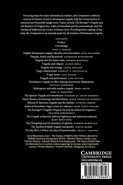 Featuring essays by major international scholars, this Companion combines analysis of themes crucial to Renaissance tragedy with the interpretation of canonical and frequently taught texts. Part I introduces key topics, such as religion, revenge, and the family, and discusses modern performance traditions on stage and screen. Bridging this section with Part II is a chapter which engages with Shakespeare. It tackles Shakespeare's generic distinctiveness and how our familiarity with Shakespearean tragedy affects our appreciation of the tragedies of his contemporaries. Individual essays in Part II introduce and contribute to important critical conversations about specific tragedies. Topics include The Revenger's Tragedy and the theatrics of original sin, Arden of Faversham and the preternatural, and The Duchess of Malfi and the erotics of literary form. Providing fresh readings of key texts, the Companion is an essential guide for all students of Renaissance tragedy.