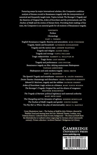 Featuring essays by major international scholars, this Companion combines analysis of themes crucial to Renaissance tragedy with the interpretation of canonical and frequently taught texts. Part I introduces key topics, such as religion, revenge, and the family, and discusses modern performance traditions on stage and screen. Bridging this section with Part II is a chapter which engages with Shakespeare. It tackles Shakespeare's generic distinctiveness and how our familiarity with Shakespearean tragedy affects our appreciation of the tragedies of his contemporaries. Individual essays in Part II introduce and contribute to important critical conversations about specific tragedies. Topics include The Revenger's Tragedy and the theatrics of original sin, Arden of Faversham and the preternatural, and The Duchess of Malfi and the erotics of literary form. Providing fresh readings of key texts, the Companion is an essential guide for all students of Renaissance tragedy.