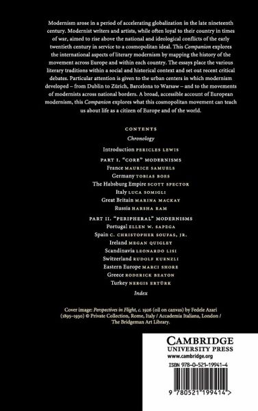 Modernism arose in a period of accelerating globalization in the late nineteenth century. Modernist writers and artists, while often loyal to their country in times of war, aimed to rise above the national and ideological conflicts of the early twentieth century in service to a cosmopolitan ideal. This Companion explores the international aspects of literary modernism by mapping the history of the movement across Europe and within each country. The essays place the various literary traditions within a social and historical context and set out recent critical debates. Particular attention is given to the urban centers in which modernism developed - from Dublin to Zürich, Barcelona to Warsaw - and to the movements of modernists across national borders. A broad, accessible account of European modernism, this Companion explores what this cosmopolitan movement can teach us about life as a citizen of Europe and of the world.