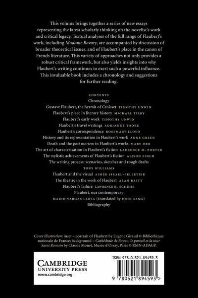 Chronology 1. Gustave Flaubert, the hermit of Croisset Timothy Unwin 2. Flaubert's place in literary history Michael Tilby 3. Flaubert's early work Timothy Unwin 4. Flaubert's travel writings Adrianne Tooke 5. Flaubert's correspondence Rosemary Lloyd 6. History and its representation in Flaubert's work Anne Green 7. Death and the post mortem in Flaubert's works Mary Orr 8. The art of characterisation in Flaubert's fiction Lawrence M. Porter 9. The stylistic achievements of Flaubert's fiction Alison Finch 10. The writing process: scenarios, sketches and rough drafts Tony Williams 11. Flaubert and the visual Aimée Israel-Pelletier 12. The theatre in the work of Flaubert Alan Raitt 13. Flaubert's failure Lawrence R. Schehr 14. Flaubert, our contemporary Mario Vargas Llosa (translated by John King) Bibliography.