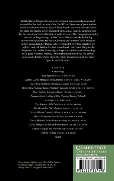 Gabriel García Márquez is Latin America's most internationally famous and successful author, and a winner of the Nobel Prize. His oeuvre of great modern novels includes One Hundred Years of Solitude and Love in the Time of Cholera. His name has become closely associated with Magical Realism, a phenomenon that has been immensely influential in world literature. This Companion, first published in 2010, includes new and probing readings of all of García Márquez's works, by leading international specialists. His life in Colombia, the context of Latin American history and culture, key themes in his works and their critical reception are explored in detail. Written for students and readers of García Márquez, the Companion is accessible for non-Spanish speakers and features a chronology and a guide to further reading. This insightful and lively book will provide an invaluable framework for the further study and enjoyment of this major figure in world literature.