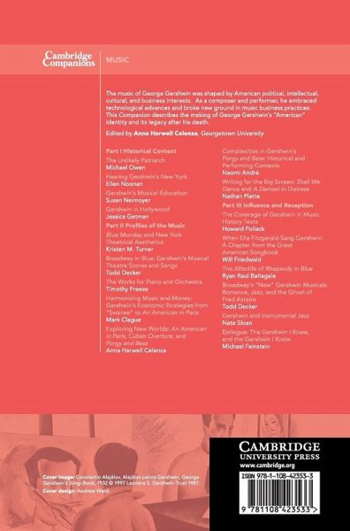 Part I. Historical Context: 1. The unlikely patriarch Michael Owen; 2. Hearing Gershwin's New York Ellen Noonan; 3. Gershwin's musical education Susan Neimoyer; 4. Gershwin in Hollywood Jessica Getman; Part II. Profiles of the Music: 5. Blue Monday and New York theatrical aesthetics Kristen M. Turner; 6. Broadway in blue: Gershwin's musical theatre scores and songs Todd Decker; 7. The works for piano and orchestra Timothy Freeze; 8. Harmonizing music and money: Gershwin's economic strategies from 'Swanee' to An American in Paris Mark Clague; 9. Exploring new worlds: An American in Paris, Cuban Overture and Porgy and Bess Anna Harwell Celenza; 10. Complexities in Gershwin's Porgy and Bess: historical and performing contexts Naomi André; 11. Writing for the big screen: Shall We Dance and A Damsel in Distress Nathan Platte; Part III. Influence and Reception: 12. The coverage of Gershwin in music history text Howard Pollack; 13. When Ella Fitzgerald sang Gershwin: a chapter from the Great American Songbook Will Friedwald; 14. The afterlife of Rhapsody in Blue Ryan Raul Bañagale; 15. Broadway's 'new' Gershwin musicals: romance, jazz, and the ghost of Fred Astaire Todd Decker; 16. Gershwin and instrumental jazz Nate Sloan; Epilogue: the Gershwin I knew, and the Gershwin I know Michael Feinstein.