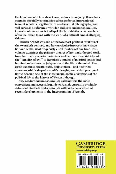 This Companion examines the primary themes of Hannah Arendt's multi-faceted thought, from her theory of totalitarianism and her controversial idea of the 'banality of evil' to her classic studies of political action and her final reflections on judgment and the life of the mind.