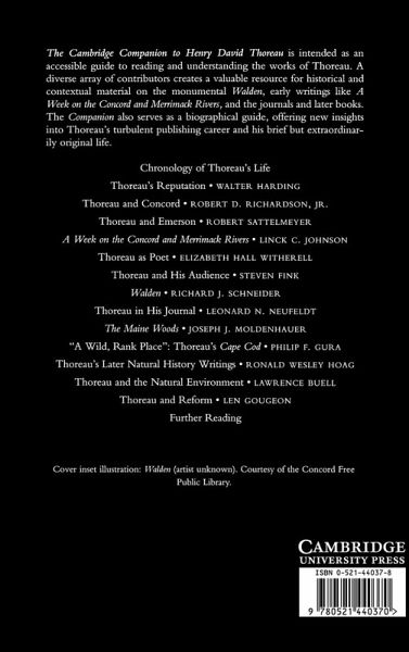 The Cambridge Companion to Henry David Thoreau is intended as an accessible guide to reading and understanding the works of Thoreau. Presenting essays by a distinguished array of contributors, the Companion is a valuable resource for historical and contextual material, whether on early writings like A Week on the Concord and Merrimack Rivers, on the monumental Walden, or on his assorted journals and later books. It also serves in some ways as a biographical guide, offering new insights into his turbulent publishing career, and his brief but extraordinarily original life. In short, the Companion helps the reader come to Thoreau's writings, as he would say, 'deliberately and reservedly' by suggesting how Thoreau uses language, how his biography informs his writing, how personal and historical influences shaped his career, and how his writings function as literary works.