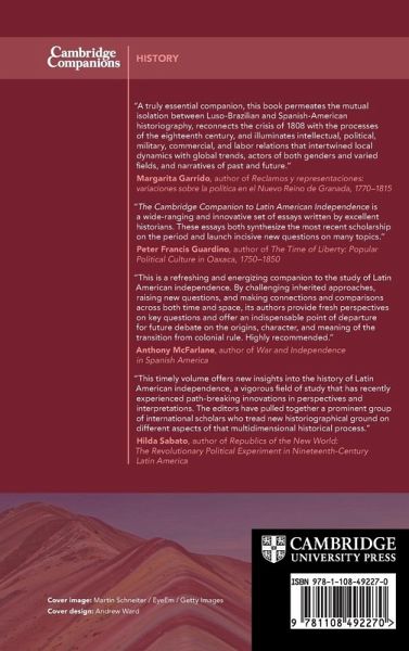 Introduction: Rethinking Latin American independence in the twenty-first century Marcela Echeverri and Cristina Soriano; 1. On the origins of Latin American independence: A reappraisal of colonial crisis, popular politics and Atlantic revolution in the eighteenth century Sinclair Thomson; 2. Constitutionalism and representation in Ibero-America during the independence processes Marcela Ternavasio; 3. Foreign interaction and the independence of Latin America: Local dynamics, Atlantic processes Ernesto Bassi and Fabrício Prado; 4. Public opinion and militarization during the wars of independence Alejandro M Rabinovich and Cristina Soriano; 5. Natural histories of remembrance and forgetting: Science and independence in the Spanish and Portuguese Americas Jorge Cañizares-Esguerra and Neil Safier; 6. Brothers in arms: Freemasonry in Latin American independence Karen Racine; 7. Beyond heroes and heroines: Gendering Latin American independence Sarah C Chambers; 8. Views on the Latin American independences from the Iberian Peninsula Álvaro Caso Bello and Gabriel Paquette; 9. Shades of unfreedom: Labor regimes in Latin America in the nineteenth century Marcela Echeverri and Roquinaldo Ferreira; 10. Early liberalism: Emancipation and its limits José M Portillo; Bibliography; Index.