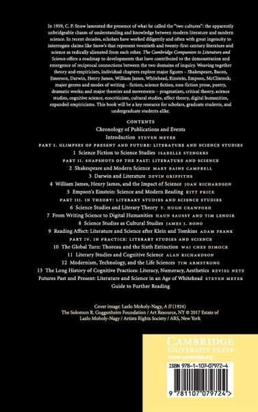 In 1959, C. P. Snow lamented the presence of what he called the 'two cultures': the apparently unbridgeable chasm of understanding and knowledge between modern literature and modern science. In recent decades, scholars have worked diligently and often with great ingenuity to interrogate claims like Snow's that represent twentieth- and twenty-first-century literature and science as radically alienated from each other. The Cambridge Companion to Literature and Science offers a roadmap to developments that have contributed to the demonstration and emergence of reciprocal connections between the two domains of inquiry. Weaving together theory and empiricism, individual chapters explore major figures - Shakespeare, Bacon, Emerson, Darwin, Henry James, William James, Whitehead, Einstein, Empson, and McClintock; major genres and modes of writing - fiction, science fiction, non-fiction prose, poetry, and dramatic works; and major theories and movements - pragmatism, critical theory, science studies, cognitive science, ecocriticism, cultural studies, affect theory, digital humanities, and expanded empiricisms. This book will be a key resource for scholars, graduate students, and undergraduate students alike.
