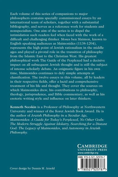 This companion volume contains twelve essays by leading scholars on the life, thought, and influence of one of Judaism's greatest thinkers: Moses Maimonides (1138â 1204). Philosopher, Rabbi, Bible commentator, physician, Talmudic expositor and social commentator, Maimonides wrote on subjects that touch every aspect of life.