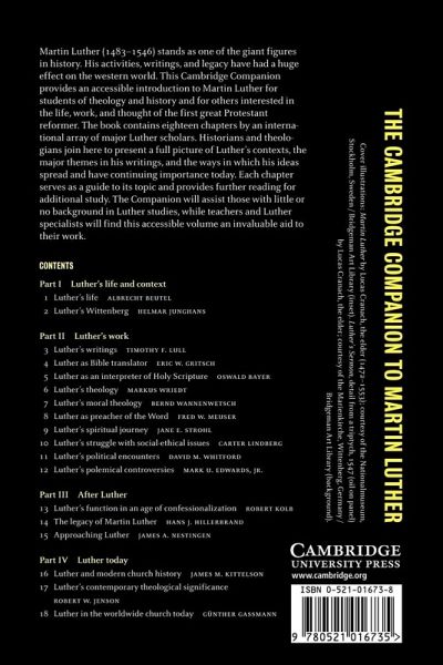 This Companion provides an accessible introduction to Martin Luther for students of theology and history and everyone interested in the life, work and thought of the first great Protestant reformer. Historians and theologians present a complete picture of Luther's major writing themes and the ways in which his ideas spread and continue to be important. The Companion is oriented to those with little or no background in Luther studies, as well as teachers and specialists.