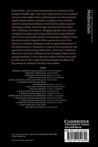 Medievalism - the creative interpretation or recreation of the European Middle Ages - has had a major presence in the cultural memory of the modern West, and has grown in scale to become a global phenomenon. Countless examples across aesthetic, material and political domains reveal that the medieval period has long provided a fund of images and ideas that have been vital to defining 'the modern'. Bringing together local, national and global examples and tracing medievalism's unpredictable course from early modern poetry to contemporary digital culture, this authoritative Companion offers a panoramic view of the historical, aesthetic, ideological and conceptual dimensions of this phenomenon. It showcases a range of critical positions and approaches to discussing medievalism, from more 'traditional' historicist and close-reading practices through to theoretically engaged methods. It also acquaints readers with key terms and provides them with a sophisticated conceptual vocabulary for discussing the medieval afterlife in the modern.