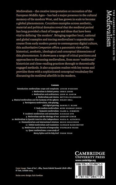 Medievalism - the creative interpretation or recreation of the European Middle Ages - has had a major presence in the cultural memory of the modern West, and has grown in scale to become a global phenomenon. Countless examples across aesthetic, material and political domains reveal that the medieval period has long provided a fund of images and ideas that have been vital to defining 'the modern'. Bringing together local, national and global examples and tracing medievalism's unpredictable course from early modern poetry to contemporary digital culture, this authoritative Companion offers a panoramic view of the historical, aesthetic, ideological and conceptual dimensions of this phenomenon. It showcases a range of critical positions and approaches to discussing medievalism, from more 'traditional' historicist and close-reading practices through to theoretically engaged methods. It also acquaints readers with key terms and provides them with a sophisticated conceptual vocabulary for discussing the medieval afterlife in the modern.