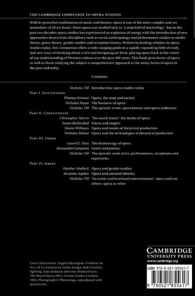 With its powerful combination of music and theatre, opera is one of the most complex and yet immediate of all art forms. Once opera was studied only as 'a stepchild of musicology', but in the past two decades opera studies have experienced an explosion of energy with the introduction of new approaches drawn from disciplines such as social anthropology and performance studies to media theory, genre theory, gender studies and reception history. Written by leading scholars in opera studies today, this Companion offers a wide-ranging guide to a rapidly expanding field of study and new ways of thinking about a rich and intriguing art form, placing opera back at the centre of our understanding of Western culture over the past 400 years. This book gives lovers of opera as well as those studying the subject a comprehensive approach to the many facets of opera in the past and today.