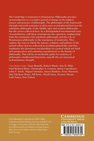 The Cambridge Companion to Renaissance Philosophy provides an introduction to a complex period of change in the subject matter and practice of philosophy. The philosophy of the fourteenth through sixteenth centuries is often seen as transitional between the scholastic philosophy of the Middle Ages and modern philosophy, but the essays collected here, by a distinguished international team of contributors, call these assumptions into question, emphasizing both the continuity with scholastic philosophy and the role of Renaissance philosophy in the emergence of modernity. They explore the ways in which the science, religion and politics of the period reflect and are reflected in its philosophical life, and they emphasize the dynamism and pluralism of a period which saw both new perspectives and enduring contributions to the history of philosophy. This will be an invaluable guide for students of philosophy, intellectual historians, and all who are interested in Renaissance thought.