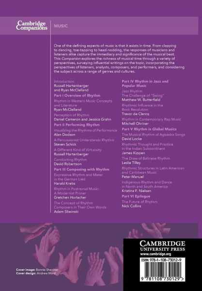 The Cambridge Companion to Rhythm examines rhythm and the richness of musical time from the perspective of performers, composers, analysts, and listeners. It surveys influential writings on the topic and considers the subject across a wide range of genres and cultures.