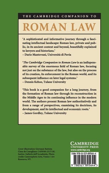 This book reflects the wide range of current scholarship on Roman law. The essays, newly commissioned for this volume, cover the sources of evidence for classical Roman law, the elements of private law, as well as criminal and public law, and the second life of Roman law in Byzantium, in civil and canon law, and in political discourse from AD 1100 to the present. Roman law nowadays is studied in many different ways, which is reflected in the diversity of approaches in the essays. Some focus on how the law evolved in ancient Rome, others on its place in the daily life of the Roman citizen, still others on how Roman legal concepts and doctrines have been deployed through the ages. All of them are responses to one and the same thing: the sheer intellectual vitality of Roman law, which has secured its place as a central element in the intellectual tradition and history of the West.