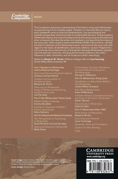 Introduction: An Endless Winter Journey Marjorie W. Hirsch and Lisa Feurzeig; Part I. Schubert's Winterreise and its Musical Heritage: 1. Music and Culture in Schubert's Vienna Andrea Lindmayr-Brandl; 2. Tradition and Innovation in Schubert's Lieder Marjorie W. Hirsch; 3. Precursors to Winterreise: Songs of Winter and Wandering, the Early Song Cycle Lisa Feurzeig; Part II. Die Winterreise: Poetic Cycle: 4. Wilhelm Müller's Odyssey Kristina Muxfeldt; 5. Schubert's Treatment of Müller's Poems: Some Issues Rufus Hallmark; Part III. Cultural and Historical Contexts: 6. Two Perspectives on Psychology in Winterreise David Romand and Lisa Feurzeig; 7. Nature and Science in Winterreise Blake Howe; 8. On the Move: Outcasts, Wanderers, and the Political Landscape of die Winterreise George S. Williamson; Part IV. Winterreise: Song Cycle: 9. Identification in die Schöne Müllerin and Winterreise James William Sobaskie; 10. Text-Music Relationships Susan Wollenberg; 11. A Winter of Poetry: Connections among the Songs in Schubert's Winterreise Xavier Hascher; 12. Discontinuity in Winterreise Deborah Stein; Part V. Winterreise after 1827: 13. Performance and Reception Benjamin Binder; 14. Canonicity and Influence Laura Tunbridge.