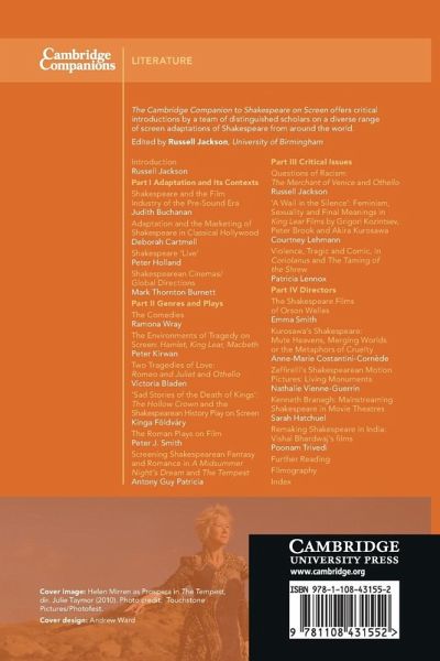 The Cambridge Companion to Shakespeare on Screen offers critical introductions by a team of distinguished scholars on a diverse range of screen adaptations of Shakespeare from around the world. The volume provides crucial contexts for undergraduate and graduate students of Shakespeare and media.