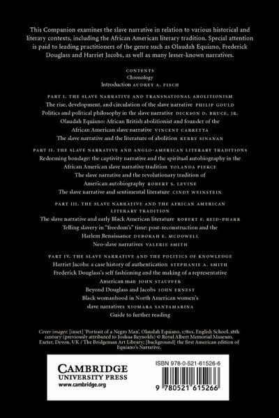 The slave narrative has become a crucial genre within African American literary studies and an invaluable record of the experience and history of slavery in the United States. This Companion examines the slave narrative's relation to British and American abolitionism, Anglo-American literary traditions such as autobiography and sentimental literature, and the larger African American literary tradition. Special attention is paid to leading exponents of the genre such as Olaudah Equiano, Frederick Douglass and Harriet Jacobs, as well as many other, less well known examples. Further essays explore the rediscovery of the slave narrative and its subsequent critical reception, as well as the uses to which the genre is put by modern authors such as Toni Morrison. With its chronology and guide to further reading, the Companion provides both an easy entry point for students new to the subject and comprehensive coverage and original insights for scholars in the field.