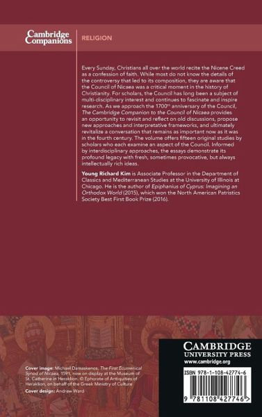1. Introduction Young Richard Kim; Part I. Contexts: 2. Imperial Fathers and their Sons: Licinius, Constantine, and the Council of Nicaea Raymond Van Dam; 3. Arius and Arianism: the Origins of the Alexandrian Controversy Rebecca Lyman; Part II. The Council: 4. Hosting the Council in Nicaea: Material Needs and Solutions Ine Jacobs; 5. Reconstructing the Council of Nicaea David M. Gwynn; 6. The Elephant in the Room: Constantine at the Council H. A. Drake; Part III. Outcomes: 7. The Creed Mark J. Edwards; 8. The Twenty Canons of the Council of Nicaea Andreas Weckwerth; 9. The Council of Nicaea and the Celebration of the Christian Pasch Daniel P. Mc Carthy; 10. Narrating the Council: Eusebius on Nicaea Aaron P. Johnson; Part IV. The Aftermath: 11. The Reception of Nicaea and Homoousios to 360 Sara Parvis; 12. The Emergence of the Pro-Nicene Alliance Mark DelCogliano; 13. Apollinarius and the Nicene Homoousion Kelley McCarthy Spoerl; 14. The Council of Ariminum (359) and the Rise of the Neo-Nicenes D. H. Williams; Part V. The Long Reception: 15. The Legacy of the Council of Nicaea in the Orthodox Tradition: the Principle of Unchangeability and the Hermeneutic of Continuity Paul L. Gavrilyuk; 16. Catholic Reception of the Council of Nicaea Geoffrey D. Dunn.