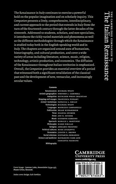 The Renaissance in Italy continues to exercise a powerful hold on the popular imagination and on scholarly enquiry. This Companion presents a lively, comprehensive, interdisciplinary, and current approach to the period that extends in Italy from the turn of the fourteenth century through the latter decades of the sixteenth. Addressed to students, scholars, and non-specialists, it introduces the richly varied materials and phenomena as well as the different methodologies through which the Renaissance is studied today both in the English-speaking world and in Italy. The chapters are organized around axes of humanism, historiography, and cultural production, and cover a wide variety of areas including literature, science, music, religion, technology, artistic production, and economics. The diffusion of the Renaissance throughout Italian territories is emphasized. Overall, the Companion provides an essential overview of a period that witnessed both a significant revalidation of the classical past and the development of new, vernacular, and increasingly secular values.