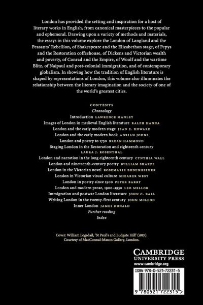 London has provided the setting and inspiration for a host of literary works, from canonical masterpieces to the popular and ephemeral. Drawing upon a variety of methods and materials, the essays in this volume explore representations of the city and its literary culture from medieval times to the present. London has provided the setting and inspiration for a host of literary works in English, from canonical masterpieces to the popular and ephemeral. Drawing upon a variety of methods and materials, the essays in this volume explore the London of Langland and the Peasants' Rebellion, of Shakespeare and the Elizabethan stage, of Pepys and the Restoration coffee house, of Dickens and Victorian wealth and poverty, of Conrad and the Empire, of Woolf and the wartime Blitz, of Naipaul and postcolonial immigration, and of contemporary globalism. Contributions from historians, art historians, theorists and media specialists as well as leading literary scholars exemplify current approachesto genre, gender studies, book history, performance studies and urban studies. In showing how the tradition of English literature is shaped by representations of London, this volume also illuminates the relationship between the literary imagination and the society of one of the world's greatest cities.