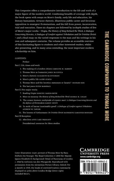 This Companion offers a comprehensive introduction to the life and work of a major figure of the modern world. Combining breadth of coverage with depth, the book opens with essays on More's family, early life and education, his literary humanism, virtuoso rhetoric, illustrious public career and ferocious opposition to emergent Protestantism, and his fall from power, incarceration, trial and execution. These chapters are followed by in-depth studies of five of More's major works - Utopia, The History of King Richard the Third, A Dialogue Concerning Heresies, A Dialogue of Comfort against Tribulation and De Tristitia Christi - and a final essay on the varied responses to the man and his writings in his own and subsequent centuries. The volume provides an accessible overview of this fascinating figure to students and other interested readers, whilst also presenting, and in many areas extending, the most important modern scholarship on him.