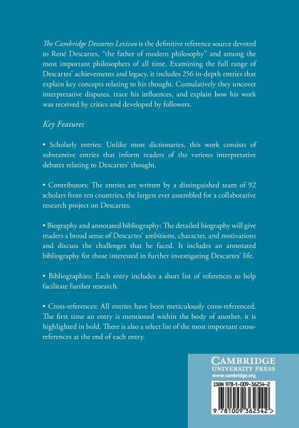 The Cambridge Descartes Lexicon is the most comprehensive reference source devoted to the thought of the seventeenth-century French philosopher, mathematician and scientist Rene Descartes. It will serve as the definitive reference source on Descartes' achievements and legacy.