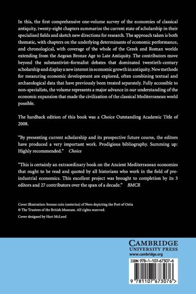 In this, the first comprehensive one-volume survey of the economies of classical antiquity, twenty-eight chapters summarise the current state of scholarship in their specialised fields and sketch new directions for research. The approach taken is both thematic, with chapters on the underlying determinants of economic performance, and chronological, with coverage of the whole of the Greek and Roman worlds extending from the Aegean Bronze Age to Late Antiquity. The contributors move beyond the substantivist-formalist debates that dominated twentieth-century scholarship and display a new interest in economic growth in antiquity. New methods for measuring economic development are explored, often combining textual and archaeological data that have previously been treated separately. Fully accessible to non-specialist, the volume represents a major advance in our understanding of the economic expansion that made the civilisation of the classical Mediterranean world possible.