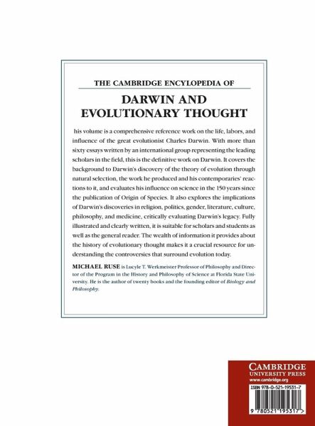 '... this volume contains a wealth of information about both Darwin and evolutionary thought. Editor Ruse is known in the field of science writing for his work on Darwinism, evolution, and religion ... The volume features many full-color plates of images, such as political cartoons, botanical drawings, and Darwin's original sketches/notes. Not many similar books are available ... This new encyclopedia mostly will appeal to historians of science and those with a particular interest in the life story and impact of Darwin, though it could also serve as a primer on the basics of natural selection for undergraduates ... Recommended ...' K. M. Sheffield, Choice