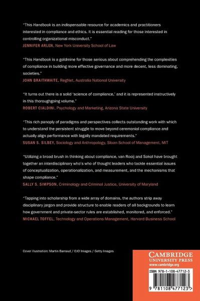 Compliance has become key to our contemporary markets, societies, and modes of governance across a variety of public and private domains. While this has stimulated a rich body of empirical and practical expertise on compliance, thus far, there has been no comprehensive understanding of what compliance is or how it influences various fields and sectors. The academic knowledge of compliance has remained siloed along different disciplinary domains, regulatory and legal spheres, and mechanisms and interventions. This handbook bridges these divides to provide the first one-stop overview of what compliance is, how we can best study it, and the core mechanisms that shape it. Written by leading experts, chapters offer perspectives from across law, regulatory studies, management science, criminology, economics, sociology, and psychology. This volume is the definitive and comprehensive account of compliance.