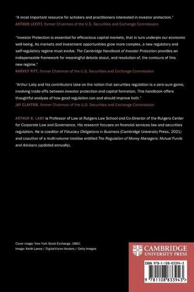 Introduction: continuity and change in investor protection Arthur B. Laby; Part I. Institutionalization and Investor Protection: 1. The financialization of corporate governance Roberta S. Karmel; 2. 'Public' mutual funds Jeff Schwartz; 3. The overlooked effects of passive management Anita K. Krug; 4. Retail investor protection and empowerment: reflections from the European Union Niamh Moloney; 5. Which investors to protect? Evolving conceptions of the American shareholder Jacob Hale Russell; Part II. The Scope of Investor Protection Regulation: 6. Retirement plan reforms in the absence of a retirement policy Natalya Shnitser; 7. Rogue brokers and the limits of agency law Deborah A. DeMott; 8. Protecting investors of collective-investor trusts in China Lusina Ho; 9. Jurisdiction and applicable law in investor suits Matthias Lehmann; Part III. The Regulation of Market Professionals: 10. Techniques of regulatory implementation: the case of Reg BI and Form CRS James A. Fanto; 11. Regulation best interest, customer trust, and the move to make private investments more available to retail investors Donald C. Langevoort; 12. Best execution: an impossible dream? Onnig H. Dombalagian; 13. Equilibrium investor protection: active mutual fund fees Michel A. Habib and D. Bruce Johnsen; 14. Reputational bonding and the birth of investment adviser regulation Arthur B. Laby; Part IV. Alternative Regulatory Regimes: 15. Do lawyers make good gatekeepers? Sung Hui Kim; 16. Retail investors and Delaware corporate law J. Travis Laster; 17. Investor protections in Muslim jurisdictions Russell Powell; 18. Insider trading law in the United States and Australia: fiduciary breaches, market abuses, and the harshness of penalties Donna M. Nagy and Juliette Overland; 19. Markets versus regulation: investor protection in the United States compared to Israel Nitzan Shilon.