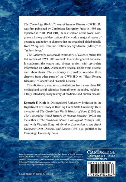 The Cambridge World History of Human Disease (CWHHD) was first published by Cambridge in 1993. The last section of the work comprises a history and description of the world's major diseases of yesterday and today in chapters organized alphabetically from "Acquired Immune Deficient Syndrome (AIDS)" to "Yellow Fever."