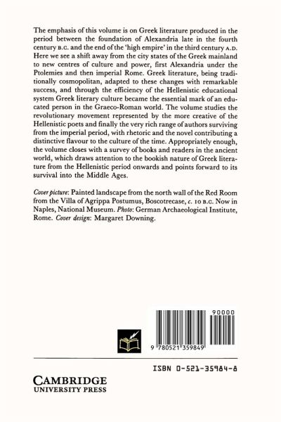 The emphasis of this volume is on Greek literature produced in the period between the foundation of Alexandria late in the fourth century B.C. and the end of the 'high empire' in the third century A.D. Here we see a shift away from the city states of the Greek mainland to the new centres of culture and power, first Alexandria under the Ptolemies and then imperial Rome, Greek literature, being traditionally cosmopolitan, adapted to these changes with remarkable success, and through the efficiency of the Hellenistic educational system Greek literary culture became the essential mark of an educated person in the Graeco-Roman world.