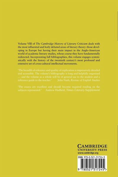 Volume 8 of The Cambridge History of Literary Criticism deals with the most influential and hotly debated areas of literary theory as they developed in Europe and revolutionised Anglo-American literary studies. Incorporating full bibliographies, this volume charts and analyses these cross-cultural intellectual movements.