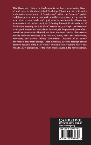 This Cambridge History of Modernism is the first comprehensive history of modernism in the distinguished Cambridge Histories series. It identifies a distinctive temperament of 'modernism' within the 'modern' period, establishing the circumstances of modernized life as the ground and warrant for an art that becomes 'modernist' by virtue of its demonstrably self-conscious involvement in this modern condition. Following this sensibility from the end of the nineteenth century to the middle of the twentieth, tracking its manifestations across pan-European and transatlantic locations, the forty-three chapters offer a remarkable combination of breadth and focus. Prominent scholars of modernism provide analytical narratives of its literature, music, visual arts, architecture, philosophy, and science, offering circumstantial accounts of its diverse personnel in their many settings. These historically informed readings offer definitive accounts of the major work of twentieth-century cultural history and provide a new cornerstone for the study of modernism in the current century.