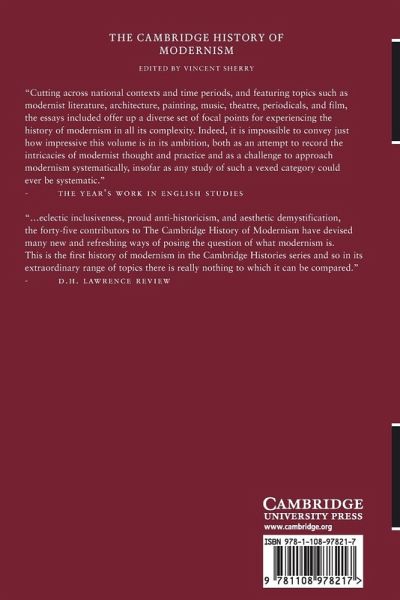 This Cambridge History of Modernism identifies a coherent understanding of 'modernism' within the 'modern' period. In forty-three chapters, prominent scholars provide analytical narratives of literature, music, visual arts, architecture, philosophy, and science, extending the consideration across pan-European and transatlantic locations.