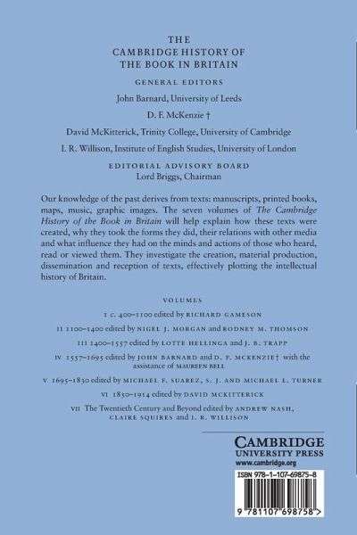 This volume of The Cambridge History of the Book in Britain presents an overview of the century-and-a-half between the death of Chaucer in 1400 and the incorporation of the Stationers' Company in 1557. The profound changes during that time in social, political and religious conditions are reflected in the dissemination and reception of the written word. The manuscript culture of Chaucer's day was replaced by an ambience in which printed books would become the norm. The emphasis in this collection of essays is on the demand and use of books. Patterns of ownership are identified as well as…mehr