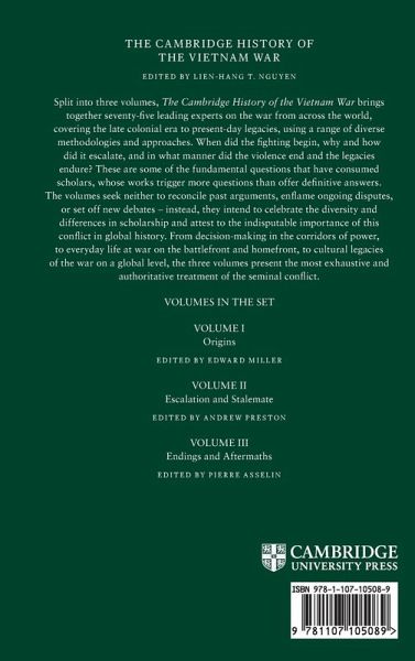Introduction. Points of departure: the global and local origins of the Vietnam War Edward Miller; Part I. Empires and Nations: 1. Memory, tradition, and the history of 'Vietnam' Liam Kelly; 2. The origins of the Vietnamese revolution Hue-Tam Ho Tai; 3. H Chí Minh and the rise of the Vietnamese Communist Party Pierre Brocheux; 4. Indochina during World War II Eric T. Jennings; 5. The august revolution of 1945 Stein Tønneson; Part II. The First Indochina War: 6. The birth of the democratic republic of Vietnam David Marr; 7. Empire and decolonization in France and Indochina Pierre Grosser; 8. China, the Soviet Union, and the first Indochina War Chen Jian; 9. The first Indochina War in the Central Highlands Oscar Salemink; 10. The first Indochina War in Northern Vietnam and the red river delta Christopher E. Goscha; 11. The battle of i n Bi n Ph Christopher E. Goscha; Part III. The Two Vietnams: 12. The Geneva Conference of 1954 Martin Thomas; 13. Eisenhower and Vietnam David Anderson; 14. Ngô ình Di m and the birth of the Republic of Vietnam Phi Van Nguyen; 15. Nation building in South Vietnam after Geneva Van Nguyen-Marshall; 16. Building socialism in North Vietnam after Geneva Alec Holcombe; 17. North Vietnam's road to war Tuong Vu; 18. Laos between two wars Vatthana Pholsena; 19. The origins of the insurgency in South Vietnam David Elliot; 20. Kennedy and Vietnam Marc Selverstone; 21. The crises of 1963 Edward Miller.