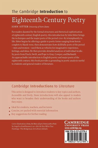 For readers daunted by the formal structures and rhetorical sophistication of eighteenth-century English poetry, this introduction by John Sitter brings the techniques and the major poets of the period 1700-1785 triumphantly to life. Sitter begins by offering a guide to poetic forms ranging from heroic couplets to blank verse, then demonstrates how skilfully male and female poets of the period used them as vehicles for imaginative experience, feelings and ideas. He then provides detailed analyses of individual works by poets from Finch, Swift and Pope, to Gray, Cowper and Barbauld. An approachable introduction to English poetry and major poets of the eighteenth century, this book provides a grounding in poetic analysis useful to students and general readers of literature.
