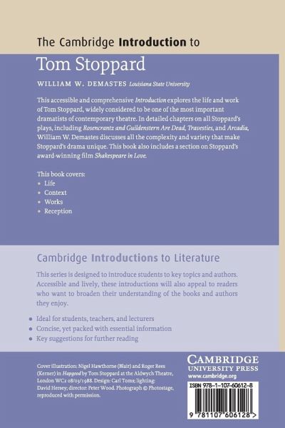 Tom Stoppard is widely considered to be one of the most important dramatists of contemporary theatre. In this Introduction, William Demastes provides an accessible overview of Stoppard's life and work, exploring all the complexity and variety that makes his drama so unique. Illustrated with images from a diverse range of Stoppard productions, the book provides clear evaluations of his major works, including Rosencrantz and Guildenstern are Dead, Travesties, Arcadia and The Coast of Utopia, to provide the most up-to-date assessment available. Detailed chapters situate each play in the context of its sources, which include Shakespeare and contemporary existential thought, espionage, quantum physics, chaos theory, romanticism, landscape design, nineteenth-century European intellectual thought and European totalitarianism. The book also includes a section on Stoppard's Academy Award-winning film Shakespeare in Love.