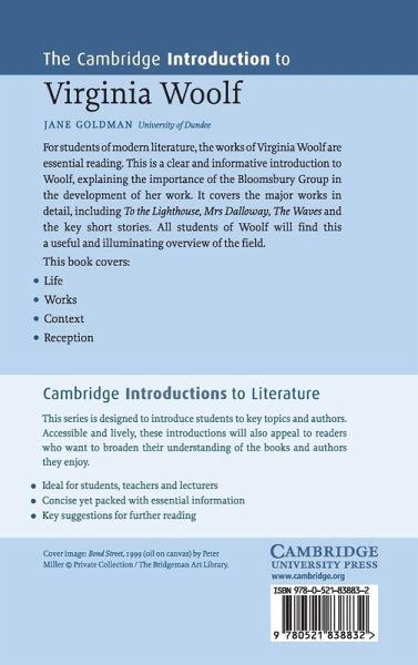This is a clear and informative introduction to Woolf's life, works, and cultural and critical contexts, covering the major works in detail, including To the Lighthouse, Mrs Dalloway, The Waves and the key short stories. All students of Woolf will find this a useful and illuminating overview of the field.