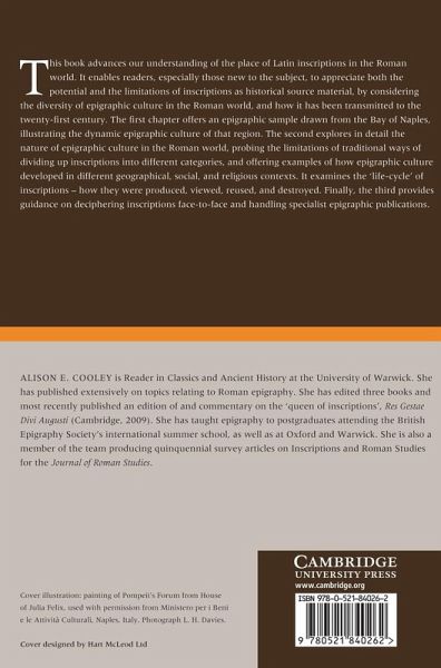 This book advances our understanding of the place of Latin inscriptions in the Roman world. It enables readers, especially those new to the subject, to appreciate both the potential and the limitations of inscriptions as historical source material, by considering the diversity of epigraphic culture in the Roman world and how it has been transmitted to the twenty-first century. The first chapter offers an epigraphic sample drawn from the Bay of Naples, illustrating the dynamic epigraphic culture of that region. The second explores in detail the nature of epigraphic culture in the Roman world, probing the limitations of traditional ways of dividing up inscriptions into different categories, and offering examples of how epigraphic culture developed in different geographical, social and religious contexts. It examines the 'life-cycle' of inscriptions - how they were produced, viewed, reused and destroyed. Finally, the third provides guidance on deciphering inscriptions face-to-face and handling specialist epigraphic publications.