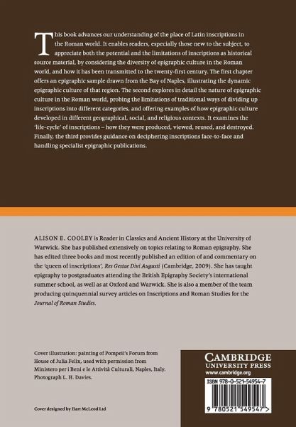 A thorough and up-to-date introduction for anyone who wishes to appreciate the contribution of Latin inscriptions to our understanding of Roman history in all its aspects, whether social, political, economic or cultural. Technical guidance is also provided on deciphering inscriptions face-to-face and handling specialist epigraphic publications.