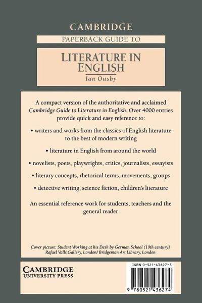 A compact version of the authoritative and acclaimed Cambridge Guide to Literature in English. Over 4000 entries provide quick and easy reference to writers and works from the classics of English literature to the best of modern writing; literature in English from around the world; novelists, poets, playwrights, critics, journalists, essayists; literary concepts, rhetorical terms, movements, groups; and detective writing, science fiction, children's literature.