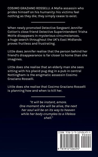 This title was previously published as The Assassin's Dog by David George Clarke. COSIMO GRAZIANO ROSSELLI. A Mafia assassin who prides himself on his humanity: his victims feel nothing as they die; they simply cease to exist. When newly promoted Detective Sergeant Jennifer Cotton's close friend Detective Superintendent Trisha McVie disappears in mysterious circumstances, a huge search throughout the UK's East Midlands proves fruitless and frustrating. Little does Jennifer realise that the person behind her friend's disappearance is far closer to home than she imagines. Little does she realise that an elderly man she sees sitting with his placid pug dog in a pub in central Nottingham is the enigmatic assassin Cosimo Graziano Rosselli. Little does she realise that Cosimo Graziano Rosselli is planning how and when to kill her. "It will be instant, amore. One moment she will be alive, the next her soul will be on its way to heaven while her body crumples to a lifeless shell."